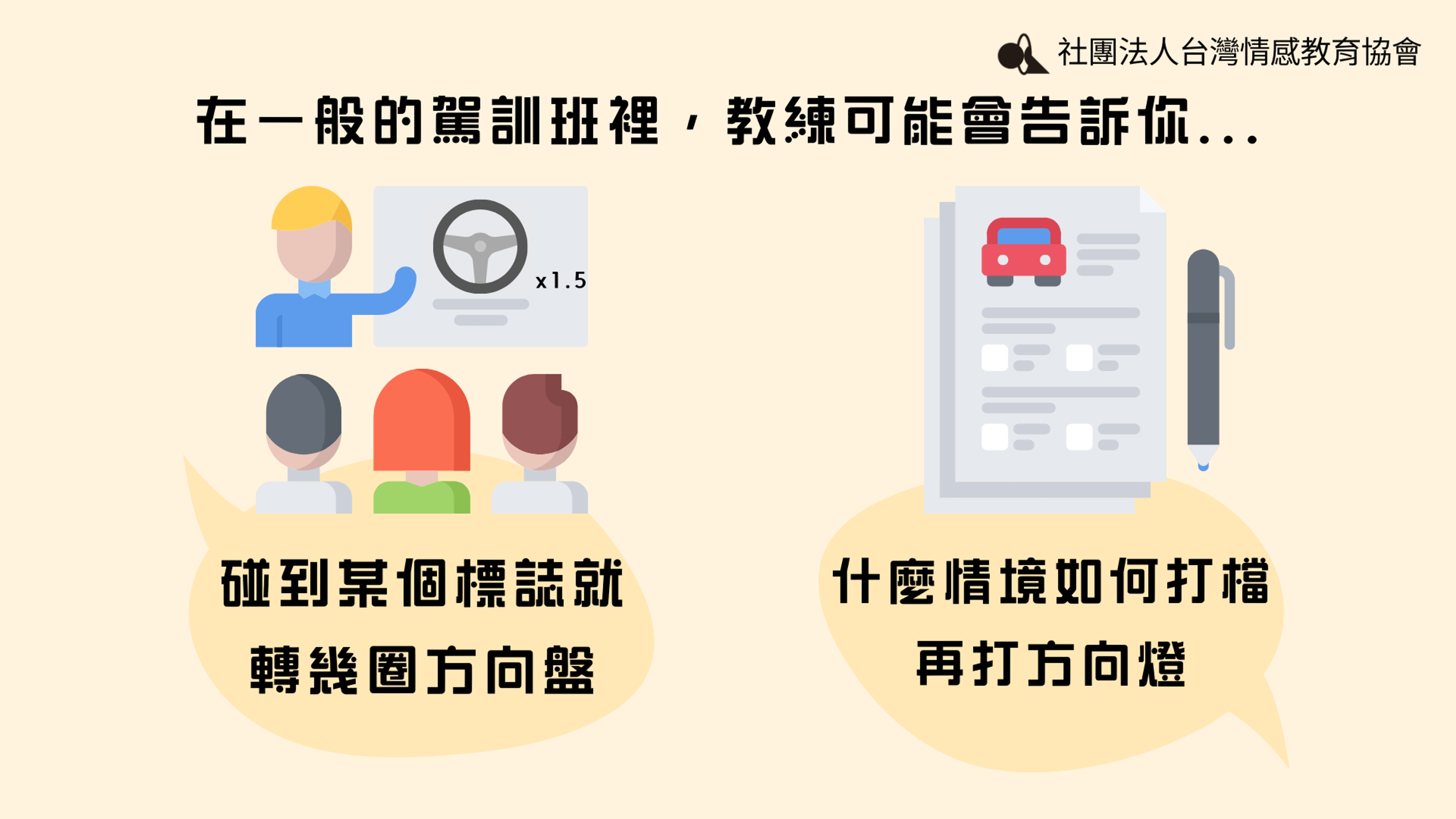 「愛情駕訓班」並不是教你在關係裡碰到某個標誌就轉幾圈的方向盤、