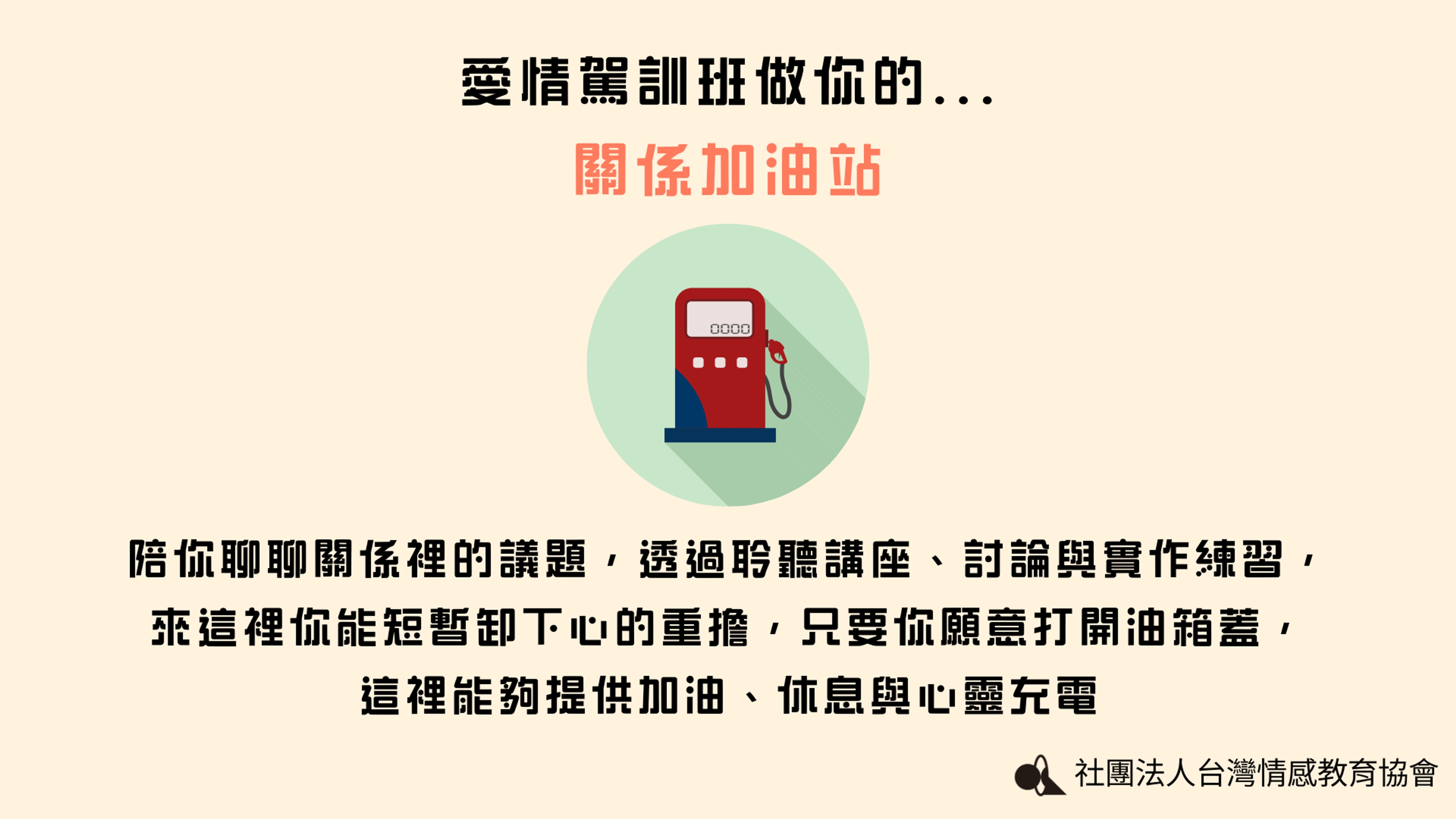 愛情之旅需要雙方共同駕駛,你準備好了嗎?上次界線談完後,這次來到了關係中的溝通,本次的愛情駕訓班工作坊將陪伴你如何在關係中平衡與溝通,建立同理心與觀察力,我們提供一個支持性的探索環境, 本堂課將透過實作引導大家反思自己的關係之旅!