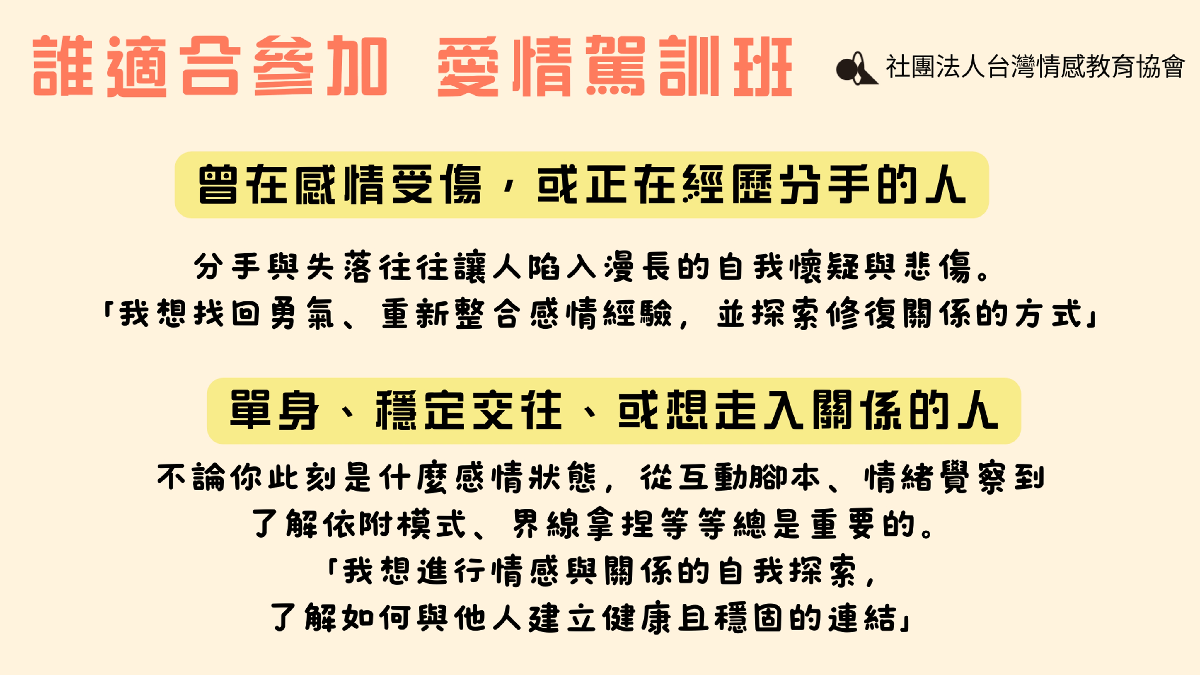 - 探索面對過往感情經驗的方法,學習重整與應對
